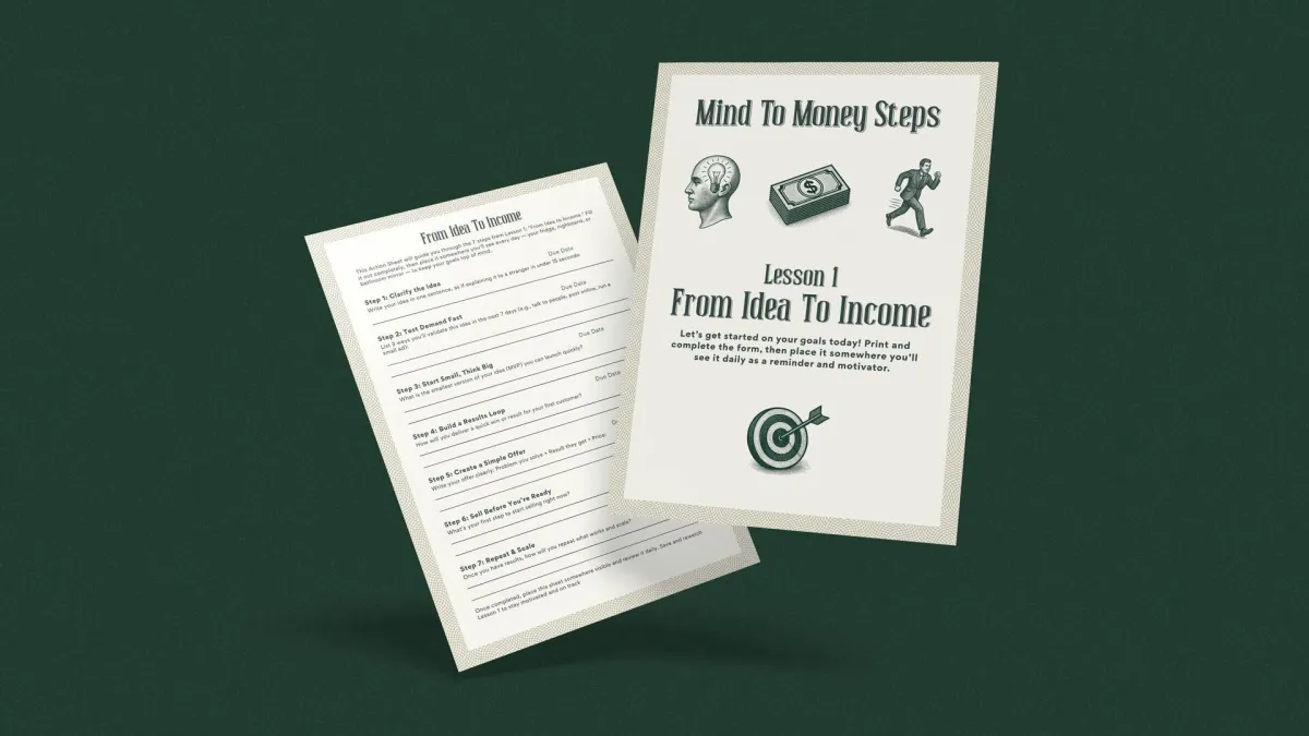 Have a great idea or skill but not sure how to make money from it? You’re not alone – and that’s exactly why we created Mind to Money Steps. We provide step-by-step video lessons and printable Action Sheets to guide you from brainstorm to your first dollar earned. No fluff, no overwhelm – just a clear roadmap to help you stop dreaming and start doing.